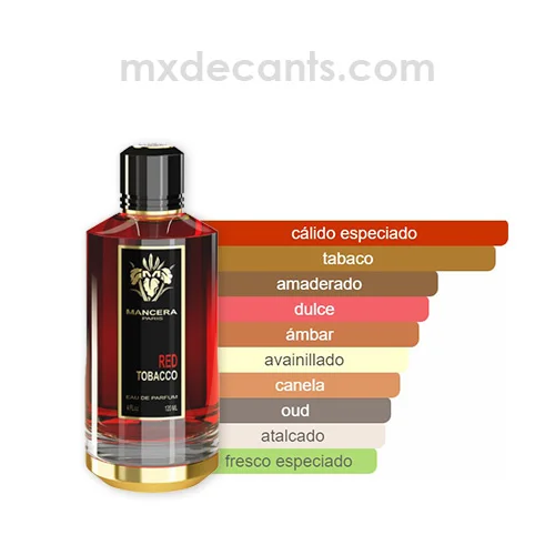 Red Tobacco de Mancera es una fragancia intensa y cálida lanzada en 2017, perteneciente a la familia olfativa amaderada especiada. Esta creación se ha vuelto icónica entre los amantes de perfumes orientales por su combinación de tabaco ahumado con toques dulces y especiados, ofreciendo un aroma atrevido y seductor.